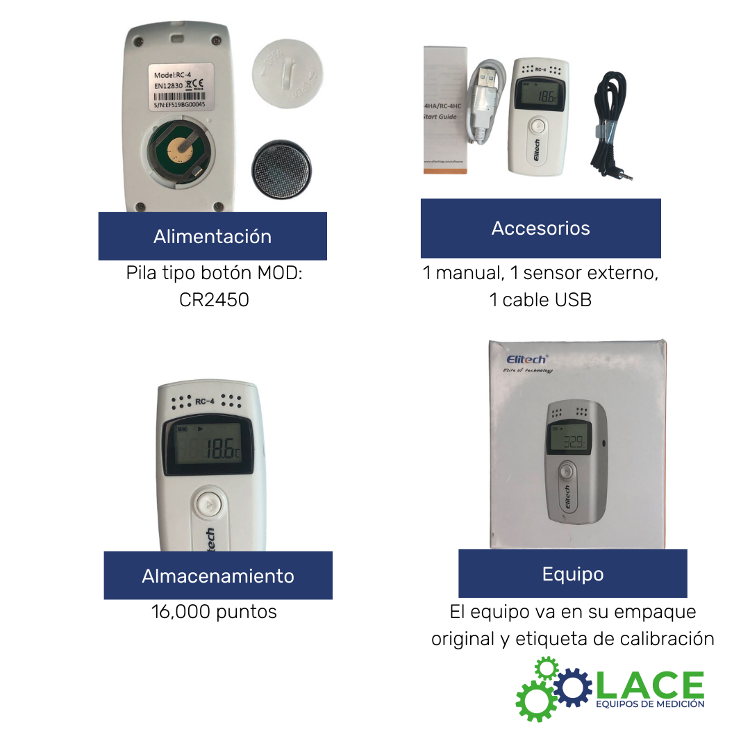 RC-4: -30℃~60℃(sensor interno), -40℃~85℃(sensor externo opcional)