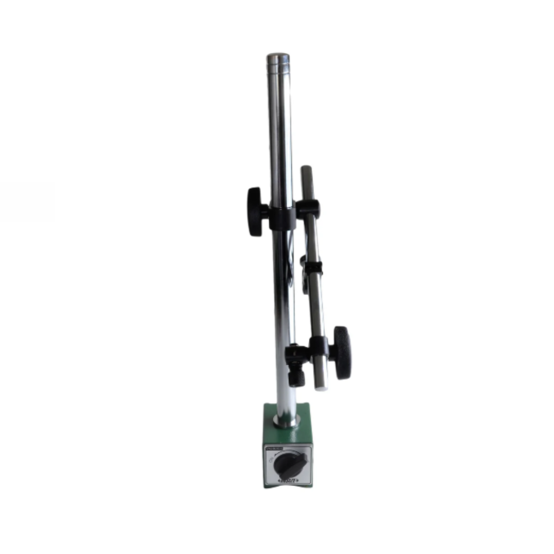 Soporte magnético profesional Insize 6202-100 para indicadores (analógicos o digitales) y comparadores. Ofrece alta estabilidad, sujeción de 100 kgf y compatibilidad con vástagos estándar (Ø4 mm / Ø8 mm / 3/8″). Ideal para labores de metrología, bancadas de medición, ajustes de precisión y entornos de control de calidad.