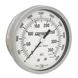 Manómetro Metrón 63445S 2 1/2" Conexión posterior latón ¼" NPT. Rango 105-700 kg/cm² (1500-10000 PSI). Seco.