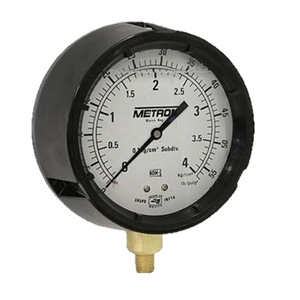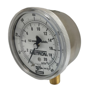 Manómetro Metrón 63200 - 63210 2 1/2". Conex. inferior o posterior de latón ¼" NPT. Rango 10-100 oz/pulg². Seco
